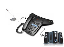 既可作为一般会议电话使用,也可外接会议麦克风和/或音箱(或调音台)使用。
